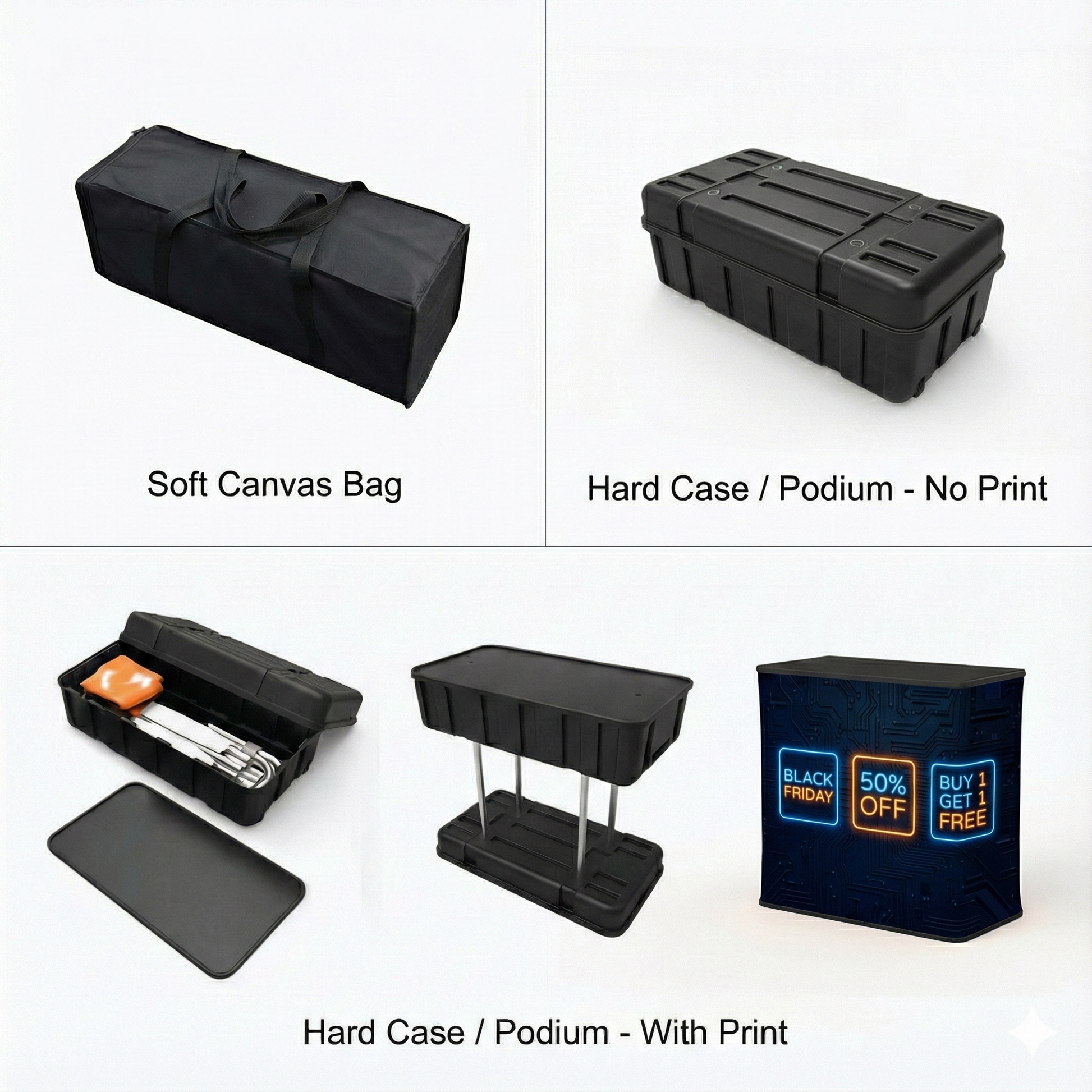 - 8' and 10' floor standing displays; 6ft display designed for tabletops
