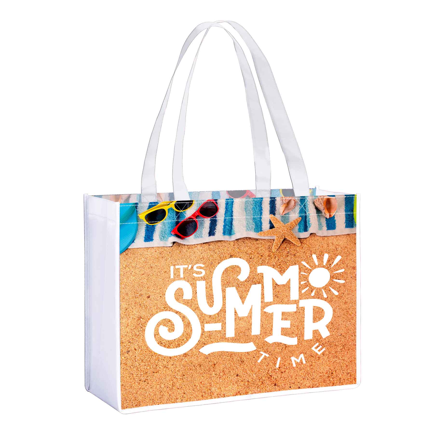 Check out this large 130 GSM non-woven matte laminated tote bag. (Handle, trims & gusset are 100 GSM not laminated.)Make your design stand out with front and back panels for your canvas, and seam to seam full color imprint. These are great for trade shows, conventions, shopping, travel and more. Create a lasting impression at your next event with eye-catching designs, sure to turn heads. All sides laminated bag is also an option for this item.