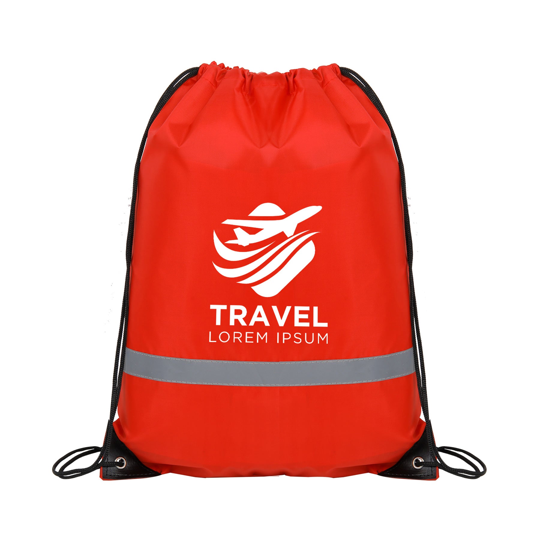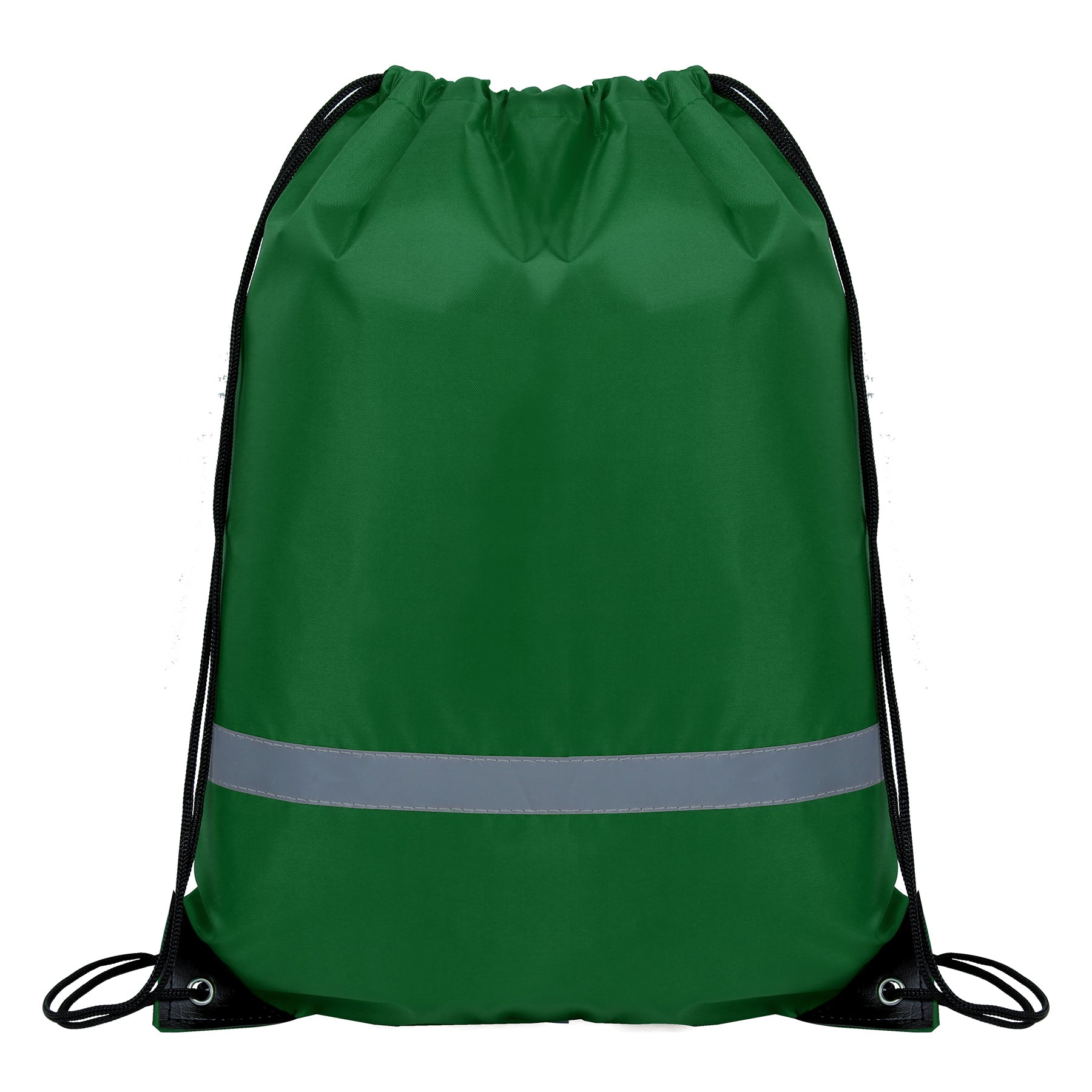This safety drawstring bag is made of high density 210D polyester material with contrasting simulated leather reinforcement trim at the corners. It is a Lightweight fabric that is also very sturdy and withstands daily wear and tear. It features an open top with shoulder straps that cinch the bag shut for quick access and a reflective stripe on front for added safety. Reinforced corners with metal grommets make the drawstring bag very durable.