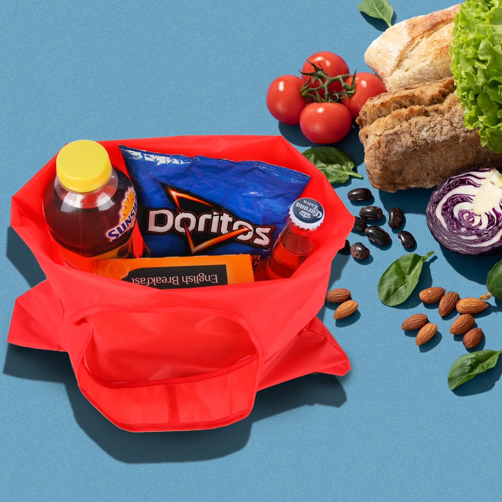 This collapsible tote bag is made of durable, reusable polyester with a large capacity and is available in a variety of colors. The shopping bag folds down to a very small size and easily fits in your pocket or purse when folded. It is perfect for shopping, camping, traveling, trade shows, stores, clubs.