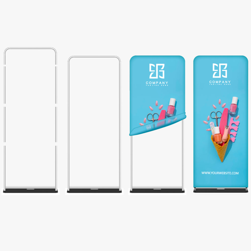 Tension Fabric Stands are premium indoor displays. The interlocking tube hardware is lightweight and built for lightning quick setups, no tools necessary! Once the hardware is in place just slip the "pillow-case" stretch fabric graphic over the frame, zip the graphic closed and set-up is complete. Graphics are full-color custom dye-sub. Add the double-sided option for twice the graphic impact.